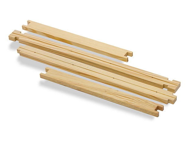 Ramki wykonane są z drewna sosnowego, składane na czopy, posiadają rowki i otworki na drucik.